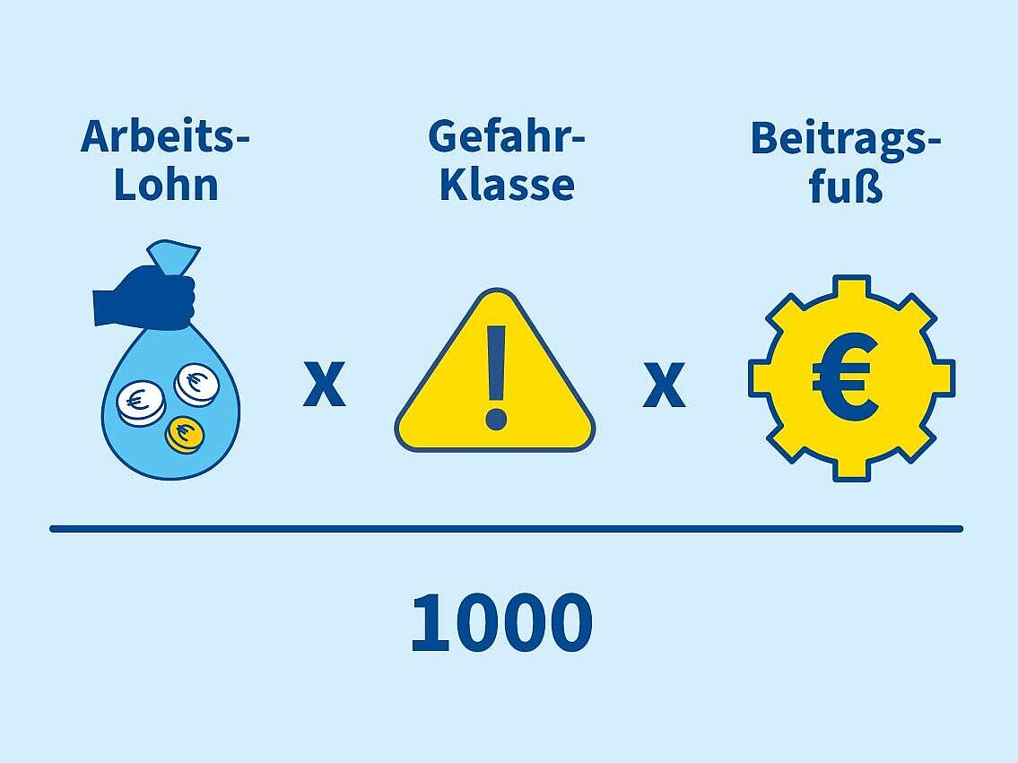 Arbeits-Lohn oder Versicherungssumme x Gefahr-Klasse x Beitragsfuß / 1.000