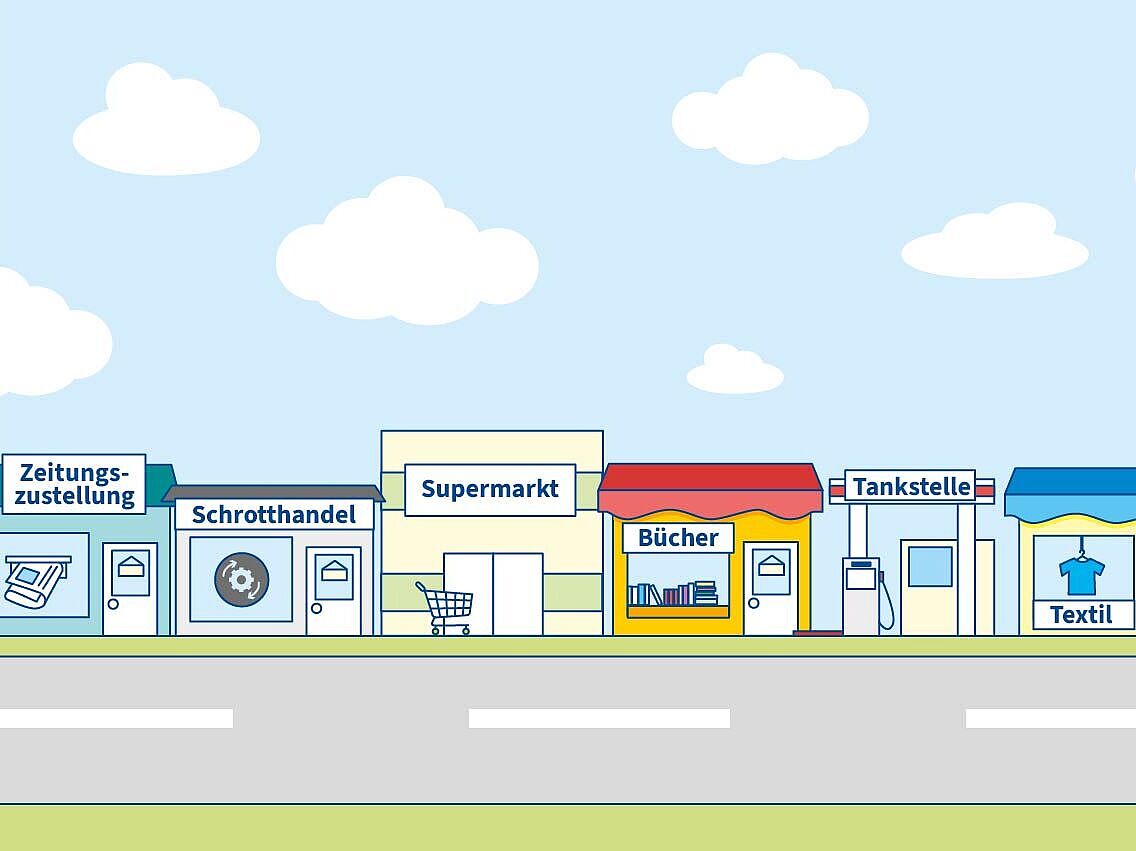- Geschäfte für Groß-Handel und Einzel-Handel.