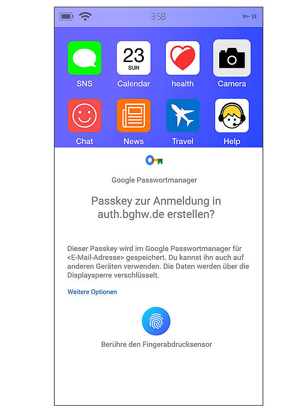 Ein Passkey ist eine besonders komfortable und sichere Möglichkeit, sich ganz ohne Passwort anzumelden – zum Beispiel mit einem Fingerabdruck, der Gesichtserkennung oder einer Geräte-PIN. Das funktioniert schnell, sicher und schützt Sie zuverlässig vor Phishing und Datenmissbrauch.